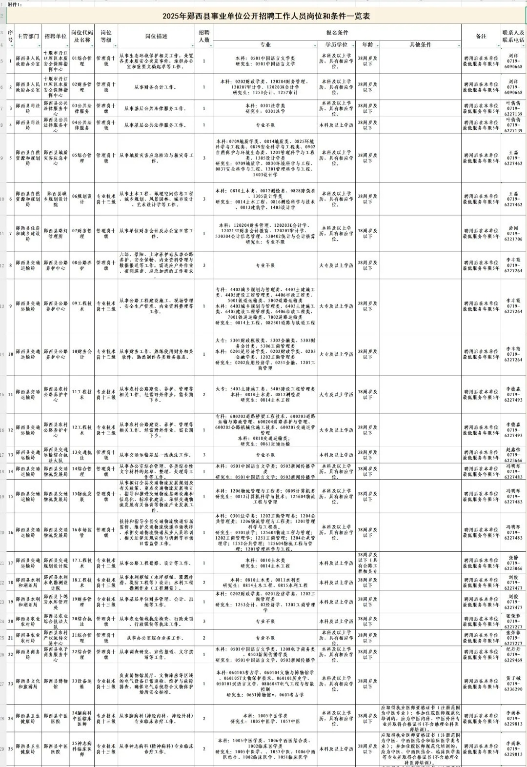 附件1 2025年郧西县事业单位公开招聘工作人员