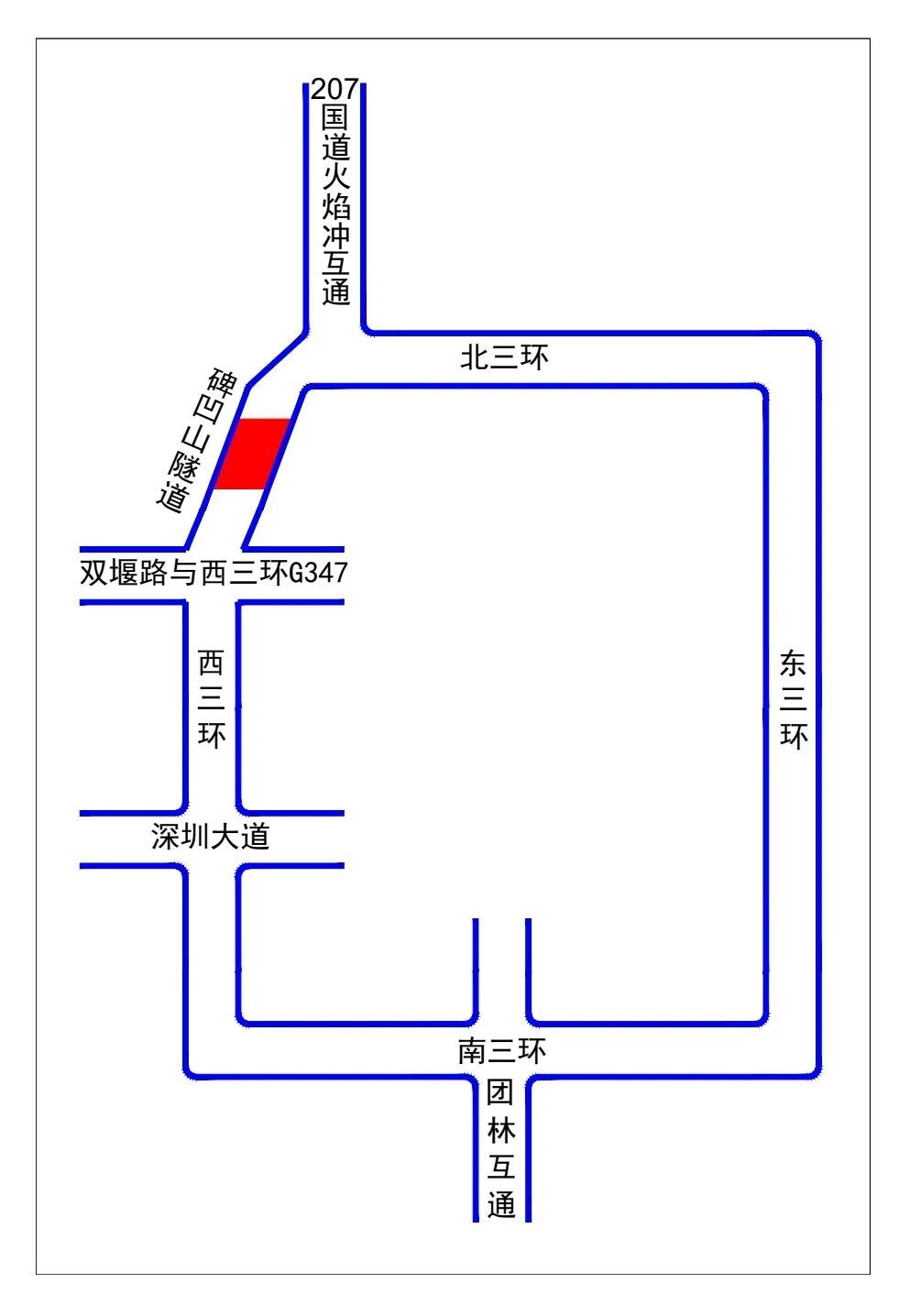 原需通行该隧道的中型及以上货运车辆,请提前规划路线,绕行东三环、南三环(详见绕行示意图)。