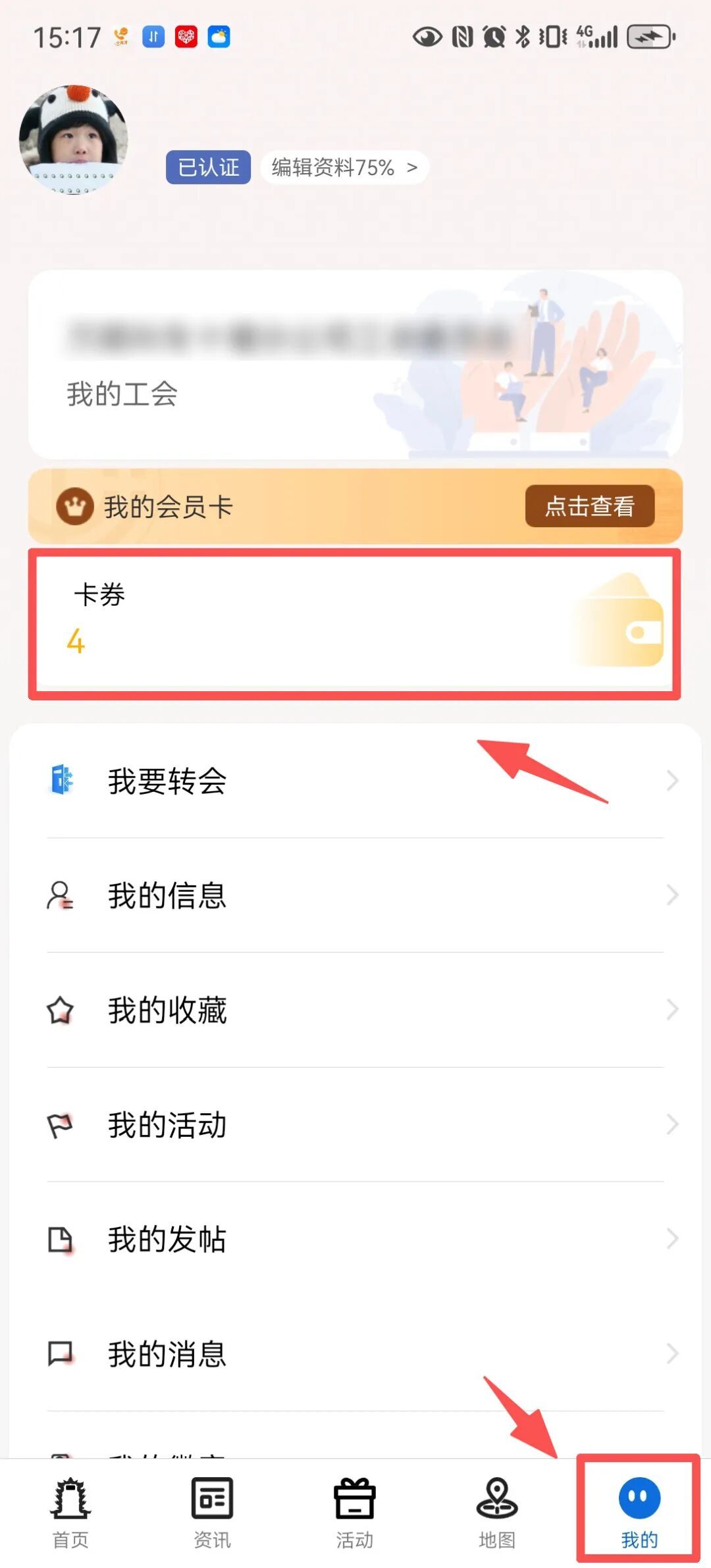 “我的”找到“卡券”