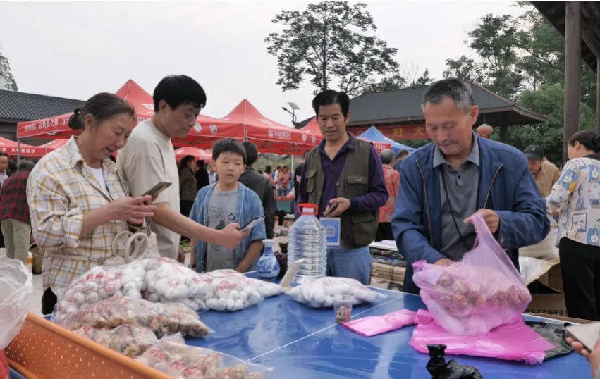 2025年5月,首场“八角赶大集”在文昌阁下鸣锣开市。最初只是试探——组织了周边几十户村民,摆出自家的蔬菜、禽蛋、干货。未曾想,一炮而红。城里的市民开车来,路远的老人坐公交车来,就为了那一口“孩时的味道”,那一份久违的“烟火乡愁”。