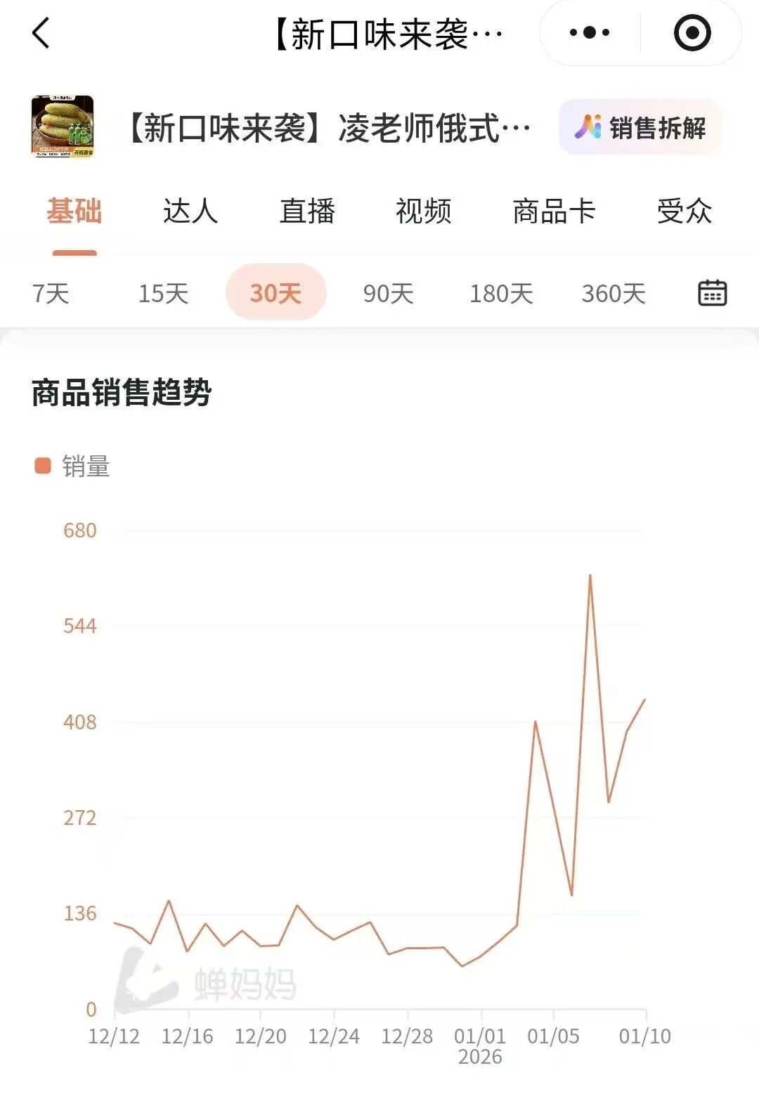 酸黄瓜销量(来源:蝉妈妈小程序)