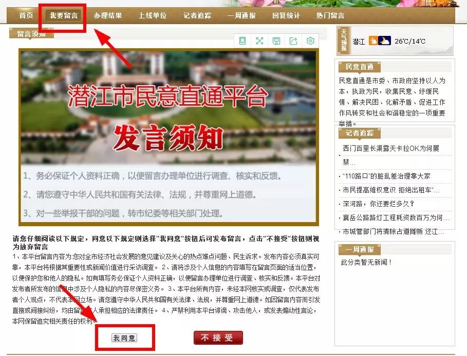 然后阅读发言须知,选择“我同意”