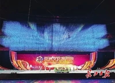 记者在现场看到,嘉年华舞台气势恢宏。舞台道具也十分丰富:20多面组合型折扇扇面,每套直径不下10米;还有多个两人高的大鼓……据介绍,LED点矩阵立体视频成像系统首次运用在舞台演出中, 在舞台上方为观众呈现360度立体影像。