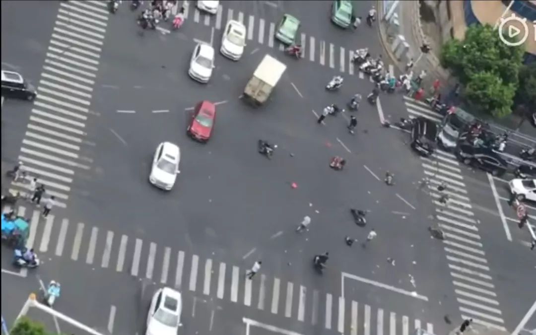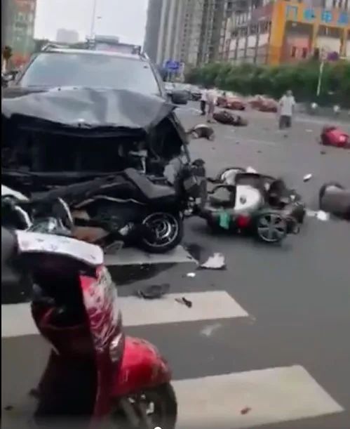 ▲当天上午,事故现场有多辆电动车被撞。网络视频截图