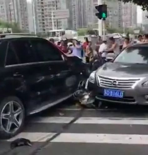 ▲电动车几乎都是在等红灯时被撞。网传视屏截图