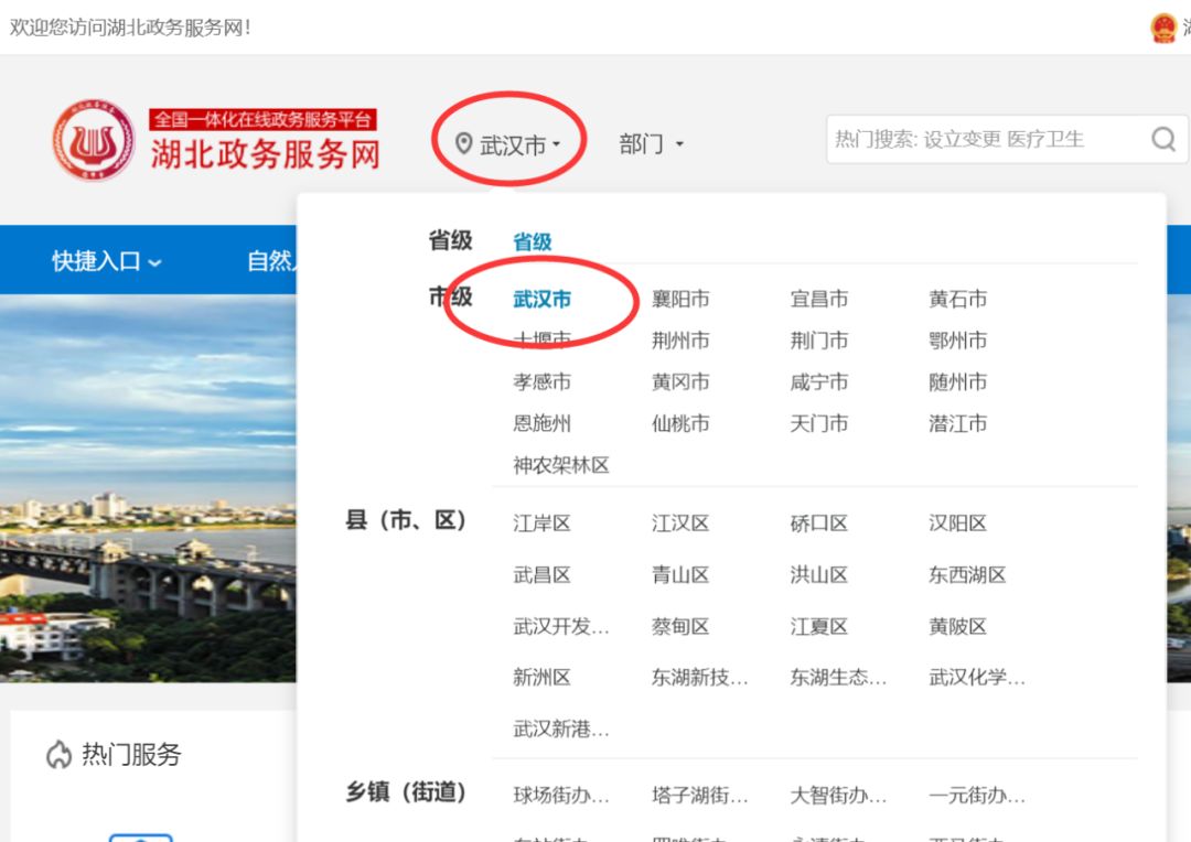 在网页顶部选择“武汉市”
