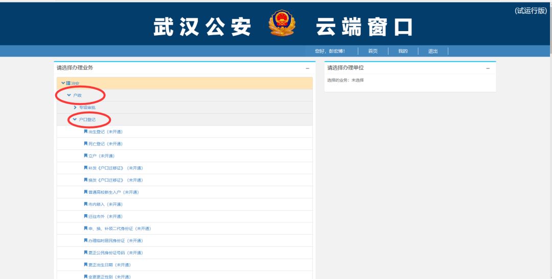 选择“户政—户口登记”模块