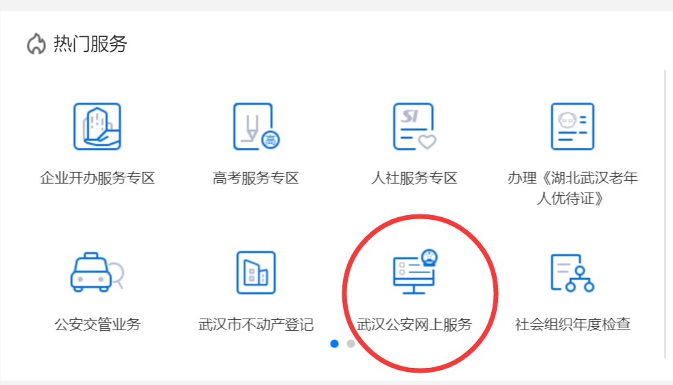 在“热门服务”栏目中,选择“武汉公安网上服务”,进入“湖北省统一身份认证平台”
