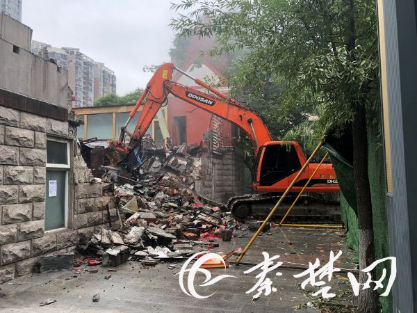 据五堰街办宣传统战委员杨萍介绍:“玫瑰宫建于1988年,从前是青少年活动中心,后来变成了餐馆,如今为给百二河的生态修复工程提供便捷,将此建筑拆除。”