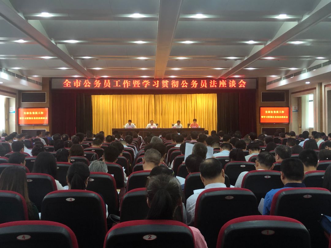 会议传达学习全国、全省公务员工作暨学习贯彻公务员法座谈会精神,安排部署全市公务员工作,并围绕新修订的公务员法、公务员职务与职级并行制度进行专题培训。