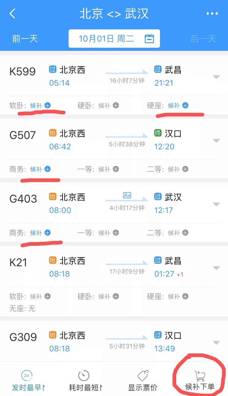 东楚晚报记者通过12306官网查询发现,黄石北站的售票时间为2日18时。当日19时10分许记者发现,10月1日,从黄石北前往北京、南昌、成都、重庆、西安、武夷山、襄阳、宜昌等方向的列车可谓是“一票难求”。这些线路的高铁动车票均已售罄,只有一等座、二等座的候补购票名额。