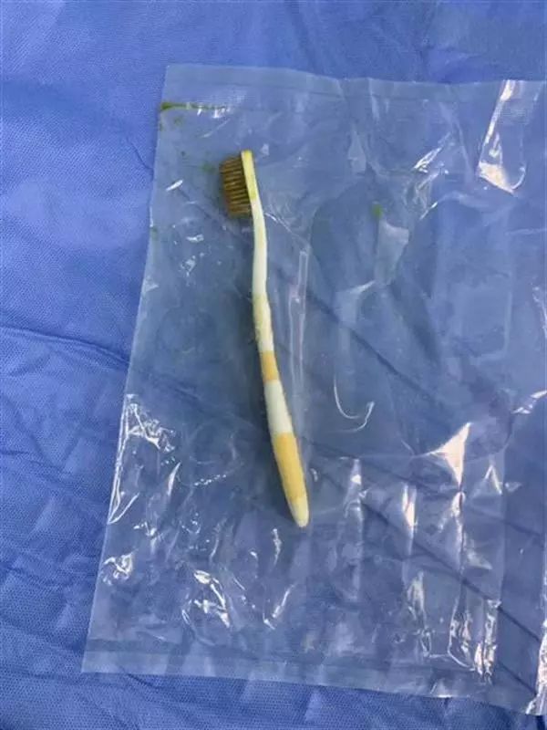 手一滑,牙刷滑进了胃里!