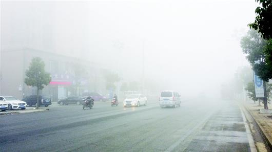 昨日,市区清晨依然雾蒙蒙,郊区车速依然很慢,直到正午,大雾还没有消散。