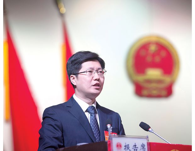 1月7日上午,市长郄英才代表市人民政府在市四届人大一次会议上作《政府工作报告》。 (本报记者 徐斌摄)