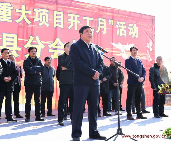副市长李建新在仪式上说,重点项目是扩大有效投资的重要手段,也是撬动经济转型的强力杠杆,此次重点项目的集中开工,体现了市委、市政府贯彻市委第五次党代会精神,持而不懈抓项目的决定和态度。今天的重要项目集中开工仪式,在市、县两地分别设主会场和分会场,全市集中开工项目93个,总投资359.72亿元。通山县集中开工建设项目13个,总投38亿元,这将对通山县进一步提高整体实力和综合竞争力,增强发展后劲,起到强有力的推动作用。