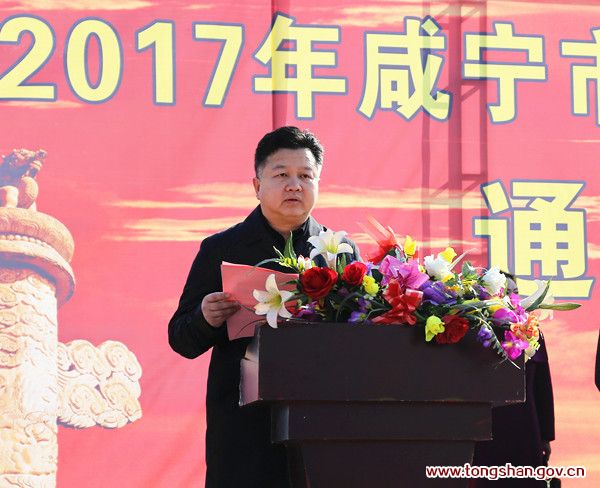 县委书记、县人大常委会主任石玉华宣布通山县2017年第一批13个重点项目开工