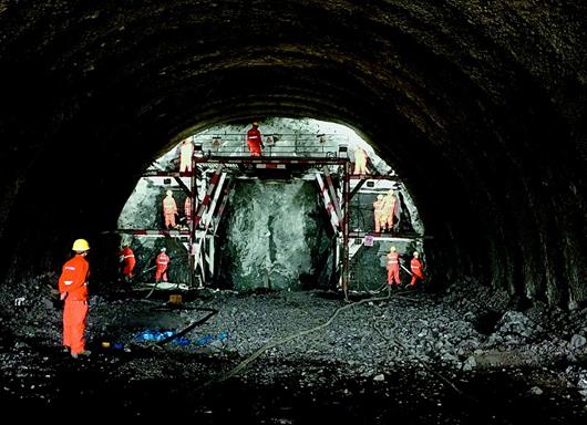 图为修路人在宣鹤高速公路分水岭隧道加紧施工。 (视界网 沈典栋 摄)