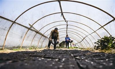 昨日,周矶农场戴湖分场二队的刘万生夫妇正忙着在自家的20亩大棚里用有机肥育苗。