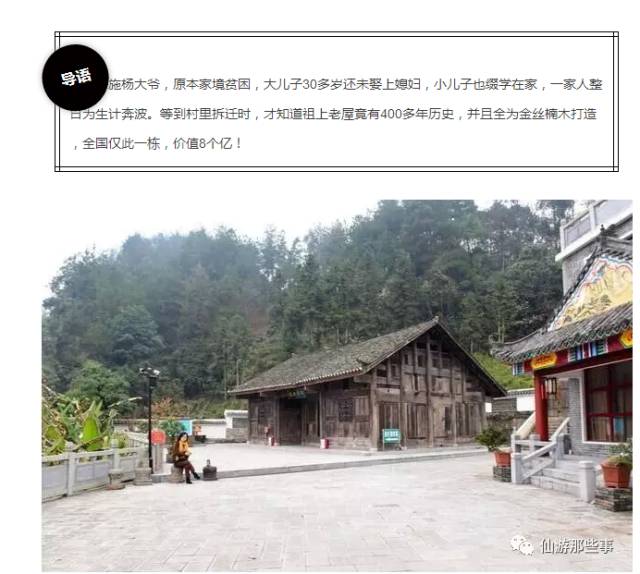 这到底是个啥事?网传版本↓↓ 恩施老屋的网帖引爆网络, 让大山深处的恩施芭蕉乡成了热点。 更多网友在好奇, 如此珍贵的古代民居, 为何现在才发现? 这真的值8个亿吗? 房子的主人如今何在? 也有人提出质疑,这或许又是在自我炒作。 图为网传恩施有座明代的金丝楠木老屋庐山真面目↑ 今日,记者赴恩施市芭蕉侗族乡高拱桥村实地探访,带你揭开“8亿老屋”的“秘密”↓↓↓ 老屋究竟长啥样?真的是金丝楠木屋吗↓↓ 跨过清江向南,距离恩施市区约10公里,是充满民族风情的芭蕉侗族乡。位于高拱桥村的恩施林业文化博物园(下称林博园)还有一个名称——夷水侗乡景区,景区内小山和流水环绕,那座楠木老屋就在一处半山腰上。 明媚阳光照射下,老屋发着暗黄偏黑的颜色,应该是日晒雨淋所致,浑圆的柱子结实粗糙,用手轻抚似乎都可以感受岁月的痕迹。屋子全榫卯结构,无论梁、柱、枋、板、椽、檩均是木材加工而成,屋面盖青灰泥瓦,土家气息浓郁。大门紧锁,木质的门槛约有30多厘米高,两扇木门上有铜制兽面门环,正面一副牌匾写着四个鎏金大字“楠木老屋”。工作人员拿来钥匙,打开了一把很老式的插销锁,推开厚重的木门,吱呀声响彻耳边。 屋里三间房,面积约130平方米,建筑材质明显经过了打磨处理,木头呈明黄色,触感细腻,静立片刻能闻到淡淡楠木清香。堂屋摆放了香几牌匾和桌椅,一个写着百世流芳的匾据称是原物,左边厢房有老式的床和梳妆台,右边厢房则空空如也,两间厢房各有窗一扇。工作人员说,家具都是搬来后重新添置应景的,并非金丝楠木。 一名游客也慕名进来参观,在工作人员指点下,打开手机电筒,照在厢房一片木板上,隐约可见有一丝丝金色细线顺着木头纹理出现,这也是金丝楠木称谓的由来。 金丝楠木为何物?金丝楠木指所有横截面泛着绸缎般金丝光泽的樟科楠属和润楠属植物,素有木中美玉之称,是我国独有的珍贵木材,木色如金,金丝缕缕,内敛艳绝,纹理图案变化多样,犹如阳光下的海面,令人叹为观止! 丝楠木性稳定,不翘不裂,经久耐用;再加上它性温和、冬暖夏凉,香气清新宜人。金丝楠木质坚硬耐腐,自古有“水不能浸,蚁不能穴”之说。历史上金丝楠木专用于皇家宫殿、少数寺庙的建筑和家具,帝王龙椅宝座也都要选用优质楠木制作。 重点来了!辟谣大会开始↓ “拆迁说”纯属虚构! 网上说湖北杨大爷家的房子面临拆迁,于是杨大爷儿子找专家鉴定,才发现老屋是明朝万历年间建的,整栋的用料都是金丝楠木。当时有专家估计,这栋老屋的市场价值不低于8亿元。这座“全国唯一的金丝楠木建筑”已经迁入恩施侗乡自然风景区。 林博园办公室主任李先生及园内巴蜀民族民俗博物馆副馆长张嘉浩介绍,这座老屋木料90%左右为名贵的金丝楠木 ,最大年轮的楠木达千年,最大直径50厘米左右楠木柱有30余根,总用木料达到100余立方米。 老屋原主人是来凤县大河镇栏马村杨姓老人一家,是夷水侗乡景区投资人陈可忠先生发现老屋后,主动找上门购买,然后整体搬到景区里 。而且栏马村山路迢迢,老屋更是在远离集镇的荒僻处,所以没有所谓拆迁之说 。 至于网友质疑的炒作之嫌,林博园办公室李主任肯定表示,景区去年才开放,现在还在完善建设中。此前从未主动对外宣传这座老屋,更不会用不实信息去自我炒作,那样只会搬起石头砸自己的脚。 目前价值不超1亿元 张嘉浩:网上所传价值8亿元也很离谱。数年前市场热炒楠木时曾一度有很大的泡沫,那时这座老屋或许能值七八个亿,但现在行情不再,这房子最多也就值不到1亿元。 不过这也是有价无市 ,毕竟陈可忠先生买来是出于爱好和保护,谁出价也不会卖。 对于老屋的价值,张嘉浩认为其文化意义大于市场价格。因楠木自古就是皇家建筑用材,民间若擅用会视作“逾越礼制”而获罪,所以这么一座完整的金丝楠木民居保存至今,实属难得。 专家都说“保存至今,实属难得”,这房子到底“哪来的”? “来历” 这座金丝楠木老屋的确切历史目前暂无考证,张嘉浩根据了解的情况整理了两个版本。 一是相传明嘉靖十三年(1534年),时局动乱,开封杨姓人家为避战乱逃至恩施来凤,发现一片楠木老林,随即带领村人砍伐建房,建成后杨姓人家告诫子孙,闭口不谈是何种木料。二是相传明万历十年(1582年),开封一杨姓官员为避战乱远遁山林,在来凤发现参天楠木,便请工匠建隐居之所。 百万元购得3年恢复原貌 购房人陈可忠先生: 2013年得知来凤有这么一座老屋后,就前往寻访。当时驱车2小时又走2小时山路,才来到栏马村,房子破旧不堪,也无法确认是金丝楠木。屋里住了杨老汉和其兄弟姊妹共三户,那年杨老汉已83岁,陈可忠向杨老汉提出购买后,几经协商取得其家人同意,现金付款百万元, 又将杨老汉安置到养老院。如今的杨老汉年迈独居,已从养老院回到乡下,建了新房子居住。 为了将老屋从荒野搬出,陈可忠重金请来巧手工匠,先给房子每个梁柱和木板编号,再拆卸后肩挑背驮运到车上,如此往返数次,全部木料才运到景区。木匠们再根据编号重新组装,并铺装石板地基,修葺一新后还将屋内木头全部打磨上光。这样历时三年,总耗资逾200万元,直到去年才正式将老屋完整呈现,基本保持了原貌 。 官方观点:认可保护名贵木质民居行为 该市林业局相关领导表示,对于生长存活的名贵保护树种,林业部门肯定会列