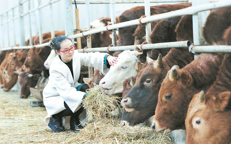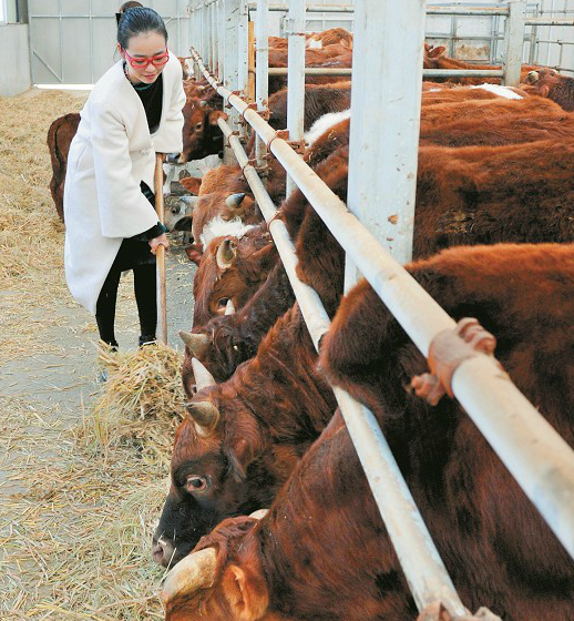 许群群介绍,第二年,养牛场的收入就达到了400万元。此后,她开始加大投入。2014年底,通过专家牵线,她引进了国际知名的良种肉用牛西门塔尔牛,一次就是150头,花费数百万元。光是一头用于育种的公牛,就花了10万元。去年底,出栏400头优质肉用牛,收入近1500万元。