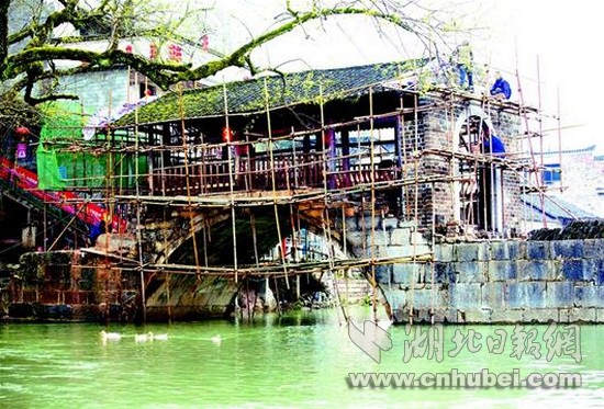 湖北日报讯 21日,工人们正在对咸宁市咸安区刘家桥古建筑风雨桥进行修缮。刘家桥古民居群始建于明成化9年,建筑群总面积达3.5万平方米,被誉为“楚天民俗第一村”。修缮工程工期6个月,采用传统工艺进行修复,以求最大程度地恢复古民居原貌。