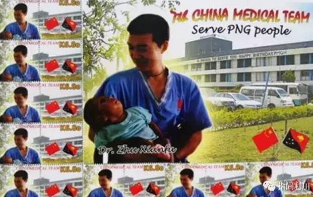 这张图片,便是发布君上面提起的那张邮票了。邮票的背景是位于巴布亚新几内亚首都的莫尔兹比总医院,右上方题字"中国驻巴新医疗队为巴新人民服务",左下角注有"朱贤富医生",右下角是中国和巴新的国旗。