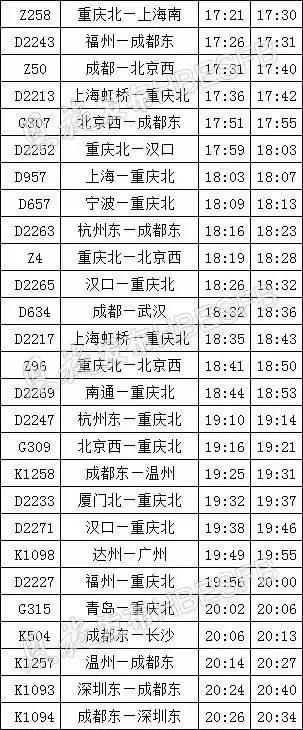 新的火车时刻表请收好
