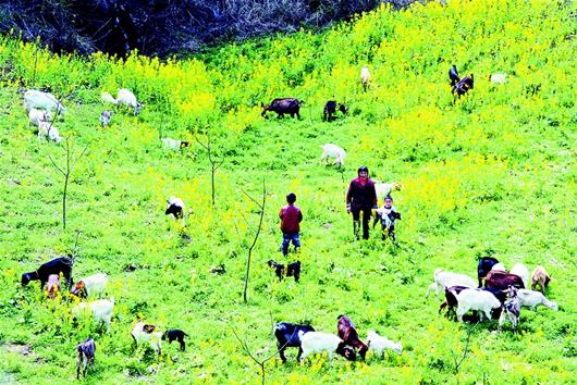 湖北日报讯 2日,周继贵一家在山坡上放羊。周继贵是巴东县信陵镇老屋场村二组村民,以前家里穷得叮当响。在县精准扶贫工作组帮扶下,她搞起了山羊养殖,今年存栏山羊40多只,加上新出生的山羊,年底预计收入2万元。 (视界网梁勇 摄)