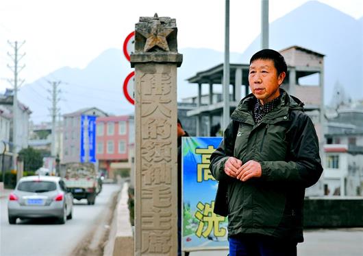图为:3月10日,何圣明前往建始县长梁乡,帮助乡亲们选购完枇杷苗后,在路边等车。