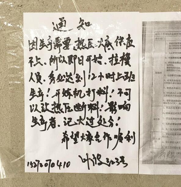 厂方张贴的赶工通知