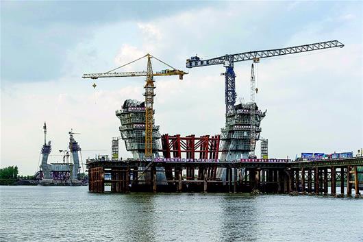 湖北日报讯 8日,嘉鱼长江公路大桥施工现场,工程建设者在主塔激战正酣。嘉鱼长江大桥是嘉鱼县和洪湖市之间的一座公路斜拉桥,与武汉城市圈环线高速公路洪湖段和咸宁西段贯通,大桥全长4.7公里,按双向六车道高速公路标准建设,预计2019年通车。目前,桥桩基、承台全部施工完毕。