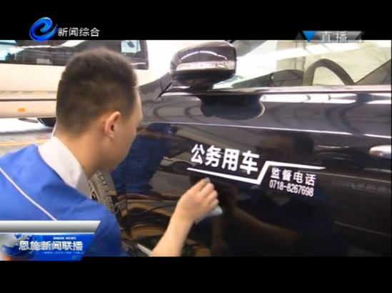 昨日,在位于州城小渡船街道办事处旗峰村的恩施威麟汽车商贸服务有限公司喷漆区,记者看到,车位处停放着三四辆已喷涂好的公车和几辆正被喷涂的公车。标识内容用白色或黑色油漆(深色车辆标识用白色油漆,浅色车辆用黑色)进行喷涂,标识规格为:小车宽450mm,高82mm;中客车宽600mm,高110mm。其中,“公务用车”几个大字字体为方正兰亭粗黑简体,监督电话为方正兰亭中黑。标识一目了然,比以前通过“A尾”车牌号来辨别公务用车确实方便了许多。