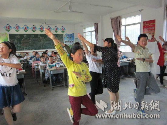 孩子们课间学舞蹈。 通讯员唐汇政 摄