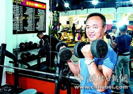 图为现在的陈志兵,鳝鱼饲料生意越做越大,每周定时去仙桃市区的健身俱乐部练肌肉。
