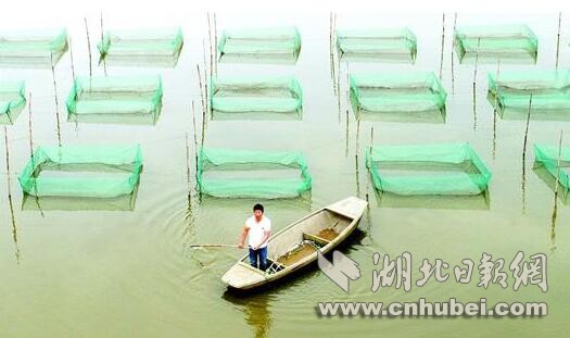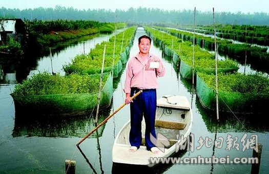 鸟瞰先锋村,一方方布满网箱的鱼池连绵几十里,村民肖继明划着小船,在其中一口鱼池中忙着整理网箱。“这都是养鳝鱼的网箱,别看一口网箱不到10平方米,纯收入可到上千元。我这个小池塘,一年能赚几十万元呢。以前种棉花,一年忙到头还搞不到1万元。”5年前,肖继明还是棉农,如今已成“鳝农”。