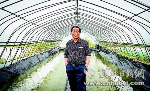 图为现在的肖鹤庭,在村里首先尝试温棚流水育鳝苗,效果出奇的好,村里准备大力推广。