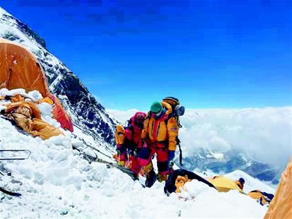 更令他遗憾的是,此次一起从北坡登顶的另一支国外队伍,其中一名队员因高寒恶劣天气不幸倒在山坡上永远告别大家。得知这个消息,正在攀登的他和队友都无比伤感,也更激励他们向顶峰冲刺的决心。