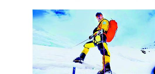 图为:杨险峰在攀登珠穆朗玛峰