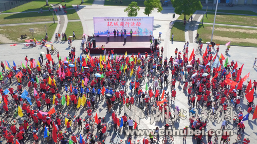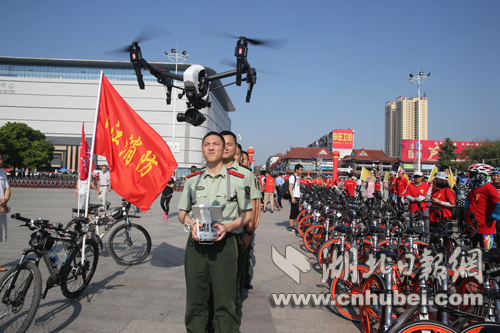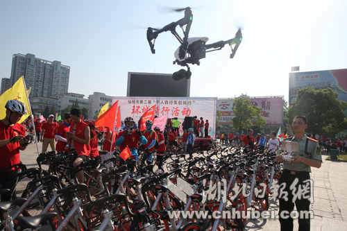 湖北日报网消息(通讯员杨会)5月28日,在仙桃市体育广场的“千人自行车创城行”骑行活动现场,一架四旋翼无人机慢慢腾空,迅速吸引了现场许多群众围观。