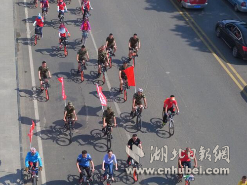 湖北日报网消息(通讯员杨会)5月28日,汉江消防支队10余名官兵参加由仙桃市委宣传部、市文明办组织的“千人自行车创城行”环城骑行活动,让消防安全知识环城流动,成为城市当中一道亮丽的风景线。