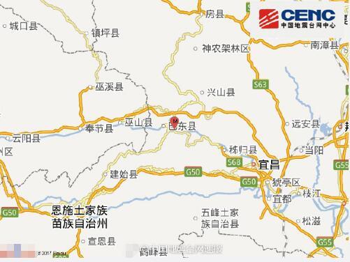 湖北恩施州巴东县(北纬31.04度,东经110.46度)发生4.1级地震。