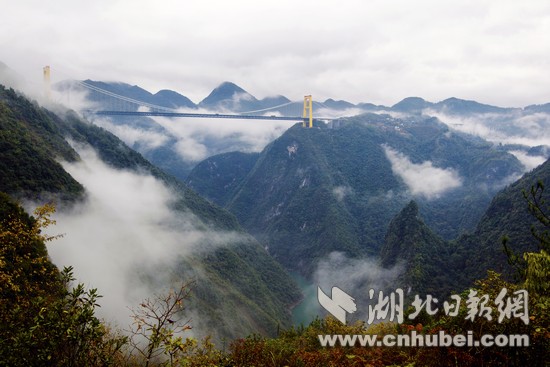 野三关,这个大西南的陆路咽喉、武陵山的东大门,北宋时就因寇准在此劝民弃猎务农而闻名于世。全镇海拔均在千米以上,境内苍山俊美、生态天然,被新华社誉为“深山野岭夜明珠”,并于1992年被录入《中国着名乡镇》。镇东北的铁厂荒森林公园,正处长江、清江分水岭上,春有黄楸吐翠、夏有百鸟飞泉、秋有白云红叶、冬有高山雾淞;镇南有一高山岩溶湖,湖水顺着一条挂在绝壁上的“天河”奔流数十里,滋养着沿线的村落人家;镇西南有曾为世界第一高桥的沪渝高速四渡河大桥,首次采用火箭输送先导索,开创世界建桥史先河……