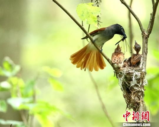栗色寿带鸟正在喂养幼鸟 徐述文 摄