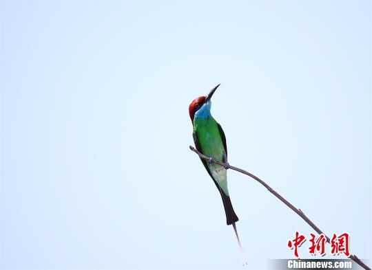 中新网潜江6月27日电 (梁婷 周冬梅 冯必忠)近日,湖北省潜江市观鸟协会12名会员分成两组,对该市境内重点鸟类进行调查,观测到96只有着“中国最美小鸟”之称的蓝喉蜂虎,此外还拍摄到6只寿带鸟取食、嬉戏、育雏等珍贵照片和视频。