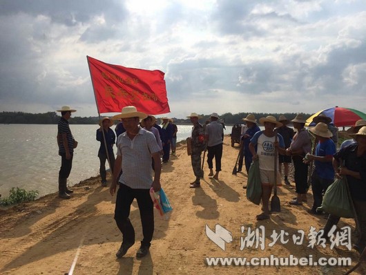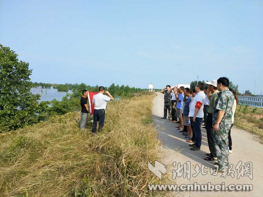 湖北日报网讯(全媒体记者张爱虎、通讯员敖琼、龙钰)“我志愿加入中国共产党……”3日下午,嘉鱼县簰洲湾镇簰洲湾大堤上,40多名党员头顶烈日,面对长江,面向党旗,重温入党誓词,学习省党代会精神,巩固防汛知识,落实防汛工作。
