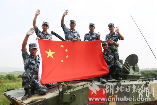湖北日报网讯(全媒体记者江卉、通讯员蒋龙、荣勇、志明)6日,在广水某训练场,“国际军事比赛-2017 ”空降排项目上演第三阶段“战车追逐赛”,驻鄂空降兵某部代表中国队出征实现完美逆袭。