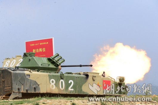 上午8时20分,俄罗斯队两个车组先后出场,搜寻目标、瞄准射击,一发发炮弹向目标区域倾泻而出,顺利完成比赛。10时07分,中国队801号战车率先出场,车长周国宇、 炮手温德鑫、驾驶员刘浩驾车沿山野赛道一路闯关,进入射击阵位。瞄准、击发,炮手温德鑫精准 操纵,发发炮弹向前飞去,正中目标靶。“轰!轰!”大地颤动,声震山间。随着大屏幕实时显示中靶情况,现场观众爆发出雷鸣般的掌声。