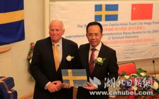湖北日报网讯(全媒体记者李彦睿 通讯员杨再生)16日,“硒发现200年纪念邮册全球首发仪式”在瑞典卡罗林斯卡学院Solna校区举行,这是世界硒发现200年以来发行的第一本纪念邮册。