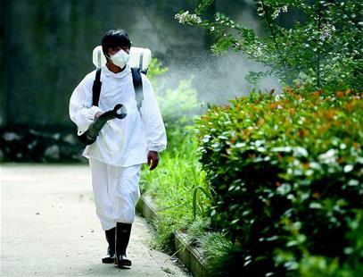 湖北日报讯 昨日,咸宁市咸安区防疫小分队在当地咸宝路瑾瑜小区进行消毒消杀。13日,咸安区遭暴雨洪水侵袭,洪水退后,卫生防疫人员对人员聚居地、广场草坪、道路、河岸和垃圾桶等喷施消毒杀菌药品,加强卫生防疫。(视界网 吴涛摄)