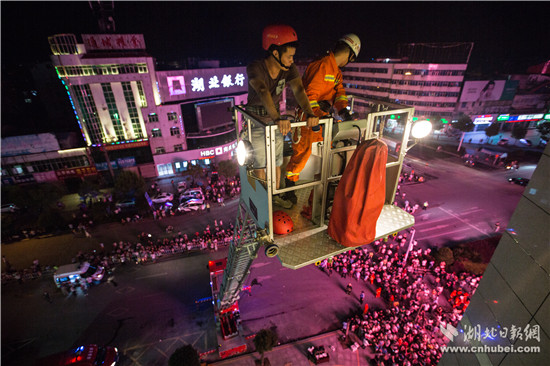 湖北日报讯(全媒体记者张文龙、通讯员朱燕林)8月29日晚,咸宁市消防支队在通城县举行大型城市综合体灭火救援跨区域演练,7个消防中队,以及通城县公安、交通、医疗等单位共计120余人参与演练。